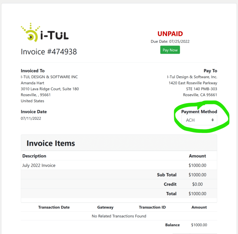 Now you can pay using ACH through the I-Tul portal!  This secure system uses the leading fintech software, Plaid, to connect your bank account to pay invoices or add a credit to your account.